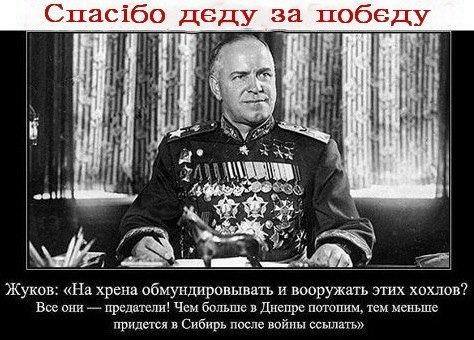 И тут Жуков не выдержал и заявил: «Зачем мы, друзья, здесь головы морочим. Нах… обмундировывать и вооружать этих хохлов? Все они предатели! Чем больше в Днепре потопим, тем меньше придется в Сибирь после войны ссылать». В ответ Рокоссовский сказал, что «это — геноцид», и дал указание сообщить о подобных планах в Генштаб.